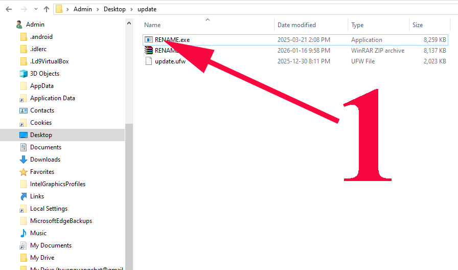 Bước 1: Mở phần mềm RENAME.EXE