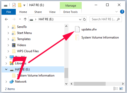 Bước 7: Tải file .ufw vào usb, nội dung là gì thì ta cũng sửa thành update.ufw